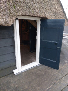 De timmerman heeft de stellingdeuren voorzien van nieuwe kozijnen